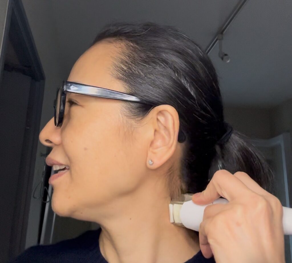 フェイスラインが下に引っ張られて、顔まで重く見えてしまう。